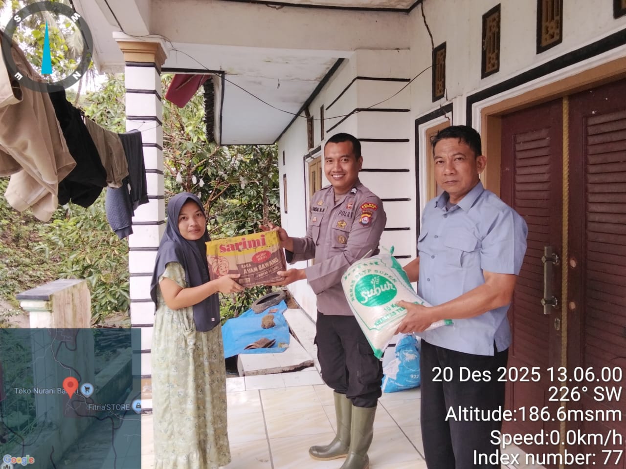 “Pelaksanaan kegiatan ini di hadiri oleh Kapolsek Cilograng Iptiu Abdul Wahab S.H,Kanit Reskrim Akhmad Siswanto S.H,Bripka Rendi Setiadi dan Briptu Faisal Nurhuda di wilayah terdampak Bencana di Kec.Cilograng.