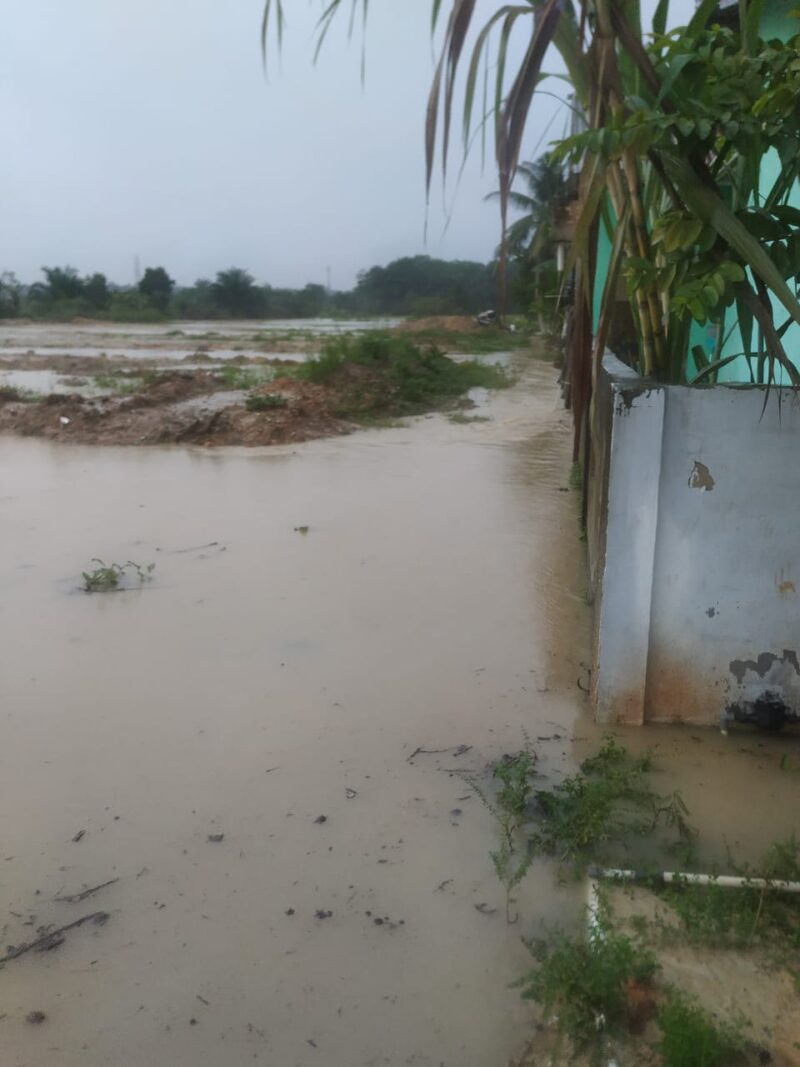 Kemudian team juga mewancarai salah seorang warga setempat yang saat itu juga berada di lokasi namun tidak mau di sebut namanya. “Pada bulan September 2025, PT. SI melakukan land clearing tanah ibu H yang dibelinya dan menutup parit alami yang selama ini digunakan untuk pembuangan limbah warga di perumahan ini. Sebagai pengganti parit tersebut, KS membuat parit parit kecil yang pembuangannya langsung ke sungai Umban sehingga apabila hujan deras dan sungai Umban meluap maka tidak hanya air hujan yang menggenangi rumah warga tapi juga luapan air dari sungai Umban.