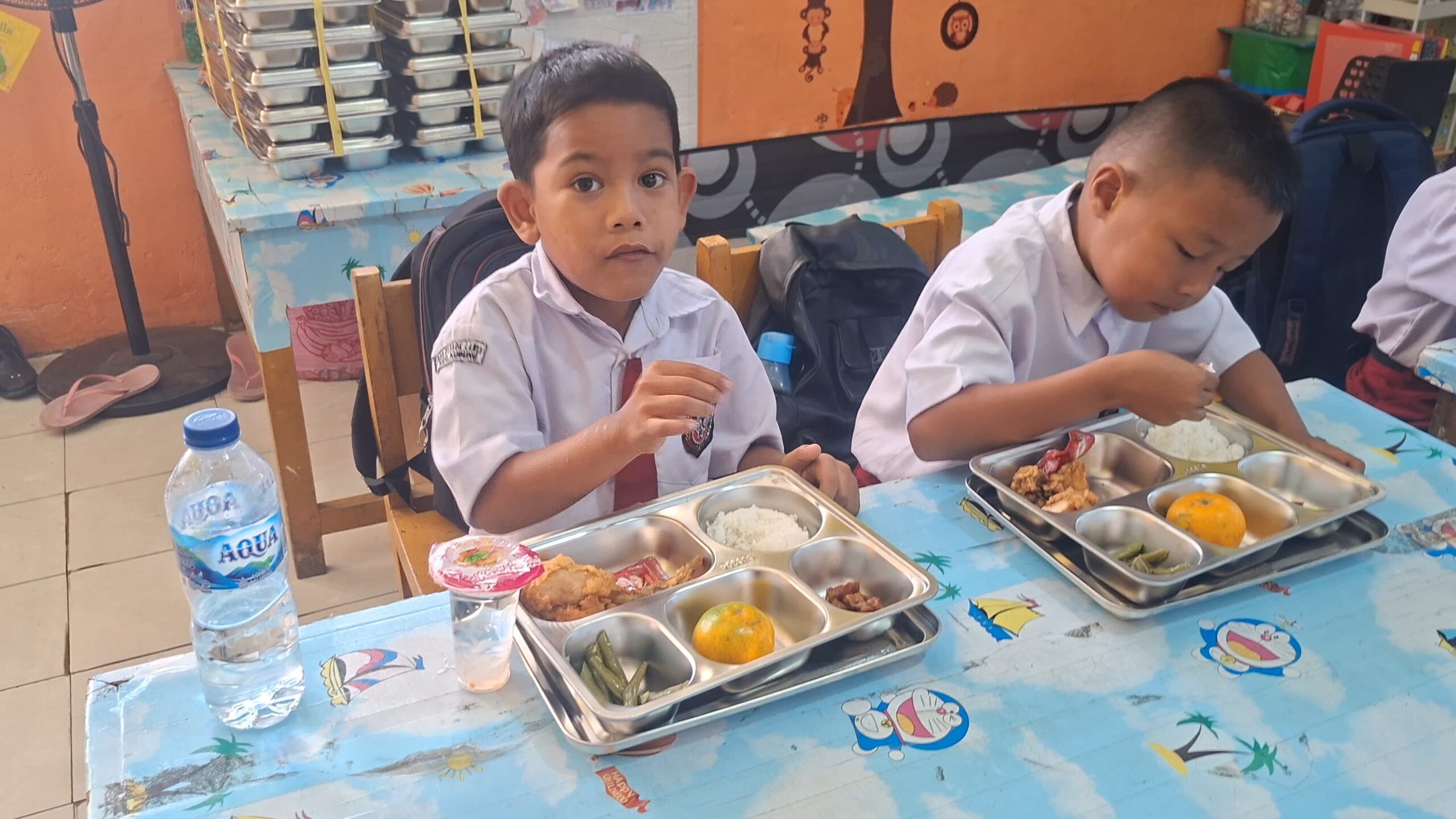 “Saya senang sekali ada program makan gratis ini. Saya jadi semangat ke sekolah dan tidak pernah terlambat lagi. Teman-teman juga jadi rajin datang pagi-pagi, apalagi menu hari ini sesuai dengan favorit saya ayam goreng ” ucap Tio Juandes Putra dengan senyum ceria.