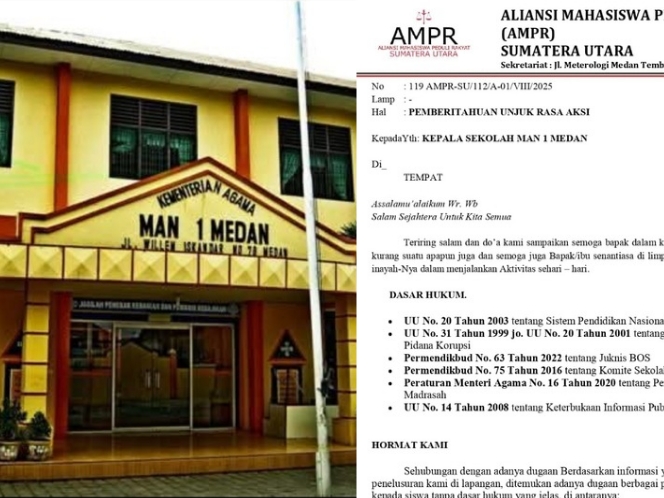 Utamapost.com, Medan Aliansi Mahasiswa Peduli Rakyat (AMPR) Sumatera Utara secara resmi menyurati pihak Sekolah Madrasah Aliyah Negeri (MAN) 1 Medan menyusul dugaan indikasi praktik…